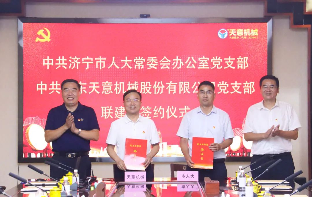 中共濟(jì)寧市人大常委會(huì)辦公室黨支部與中共山東天意機(jī)械股份有限公司黨支部舉行聯(lián)建暨簽約儀式