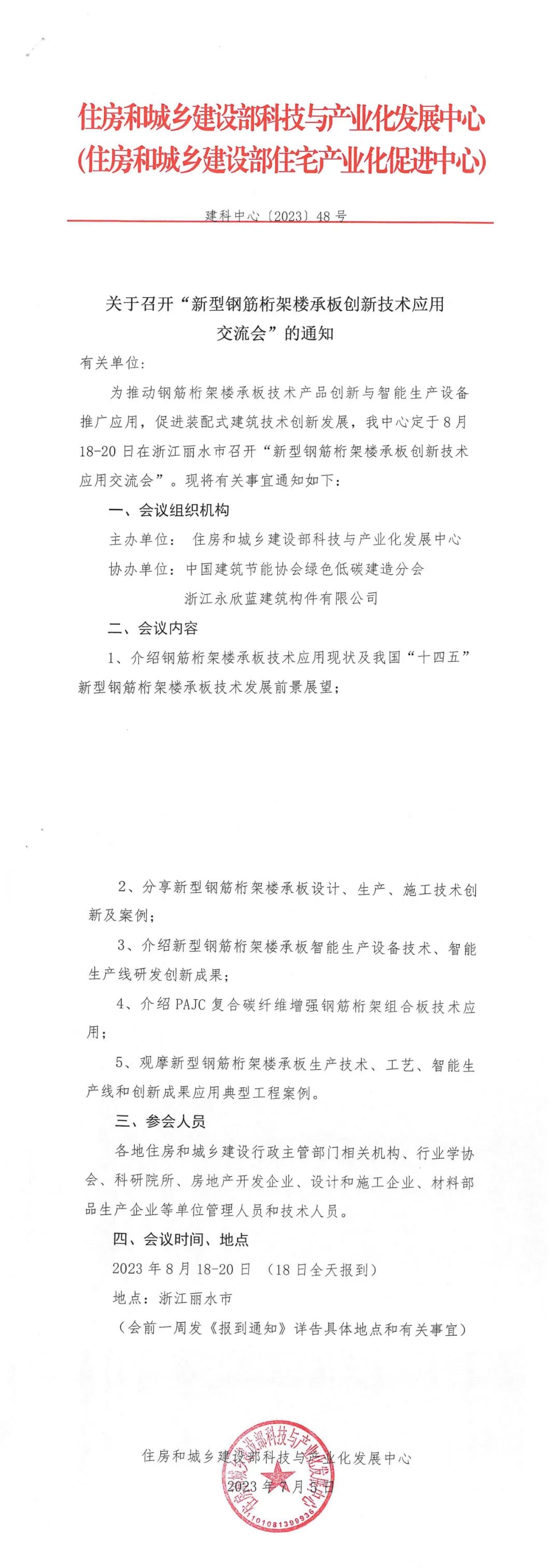 關于召開“新型鋼筋桁架樓承板創(chuàng)新技術應用交流會”的通知