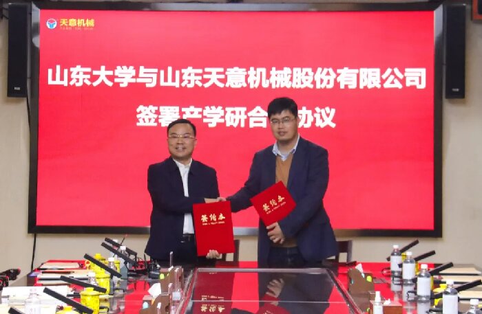 雙方簽署了產(chǎn)學研合作協(xié)議,山東大學機械工程學院院長萬熠與市科技局黨組成員、副局長付貴福為山東大學-天意機械裝配式建筑裝備研發(fā)中心揭牌。