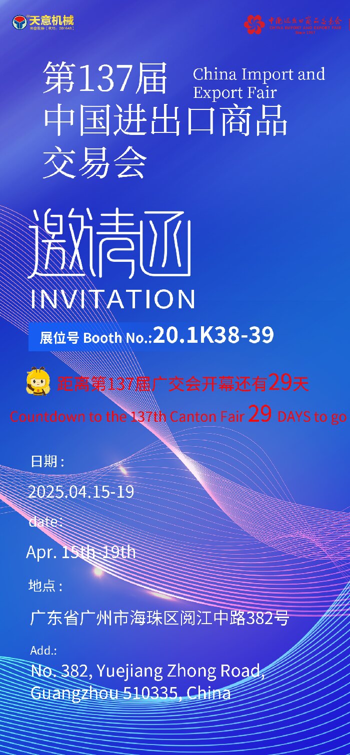 天意機(jī)械蓄勢(shì)待發(fā)!第137屆廣交會(huì)誠邀全球伙伴共赴智造未來