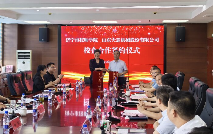 劉洪彬董事長發(fā)表了講話,他表示,企業(yè)的競爭,本質(zhì)是人才的競爭。在企業(yè)的發(fā)展中,技能型人才始終是我們最寶貴的財富。通過加強產(chǎn)教融合建設(shè),濟寧市技工院校為我們公司培養(yǎng)了許多專業(yè)過硬的技能型人才。退役軍人們,在部隊中鍛造的紀(jì)律意識、抗壓能力和團隊協(xié)作精神,正是現(xiàn)代企業(yè)所急需的人才。許多退役軍人同事已在設(shè)備調(diào)試、售后服務(wù)、生產(chǎn)管理等關(guān)鍵崗位上,成長為企業(yè)的中堅力量。作為扎根濟寧20年的本土企業(yè),山東天意機械股份有限公司成立于1998年,是以裝配式建筑裝備研發(fā)、制造為主導(dǎo),同時涵蓋鋁合金型材生產(chǎn)、機器人制造、智慧物流、新能源等領(lǐng)域的國際化、多元化、創(chuàng)新型企業(yè)集團。歡迎廣大學(xué)子和退役軍人到天意,共創(chuàng)美好未來! 隨后,劉洪彬董事長與濟寧市技師學(xué)院進行了校企合作簽約儀式。